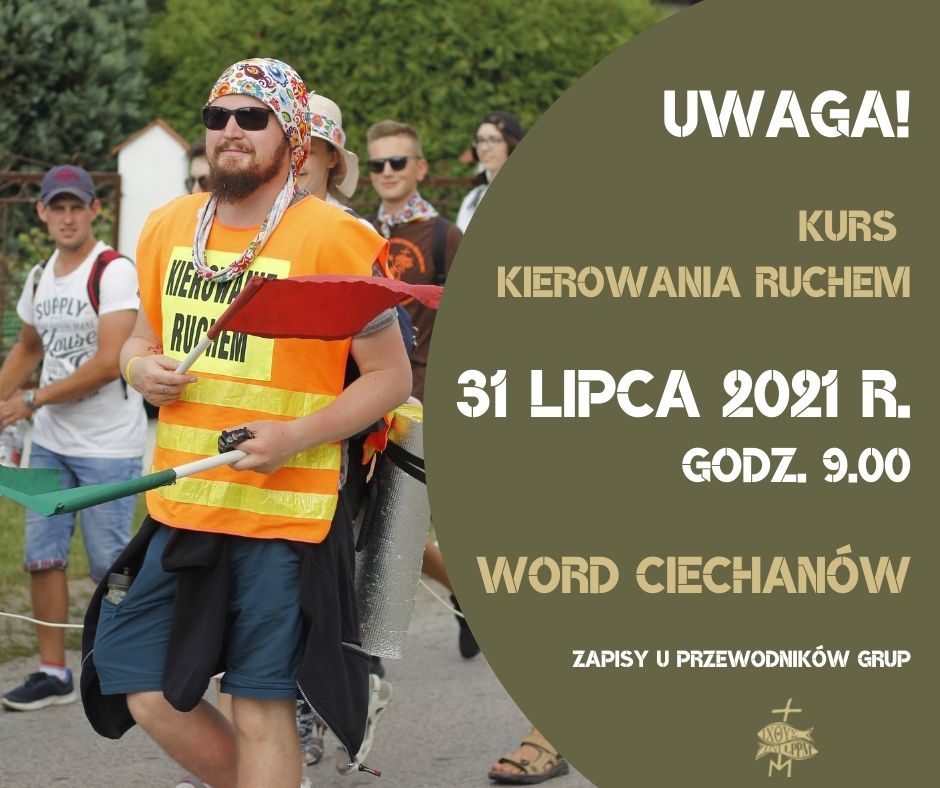 Uncategorized KURS KIEROWANIA RUCHEM 20 lipca, 2021 / 31 lipca 2021 r. o godz. 9.00 w WORD Ciechanów odbędzie się kurs kierowania ruchem dla Sióstr i Braci, którzy chcą posłużyć jako porządkowi na XXVI ŁPPM. Koszt kursu to 10 zł, a zapisywać można się u Księży Przewodników grup 😉