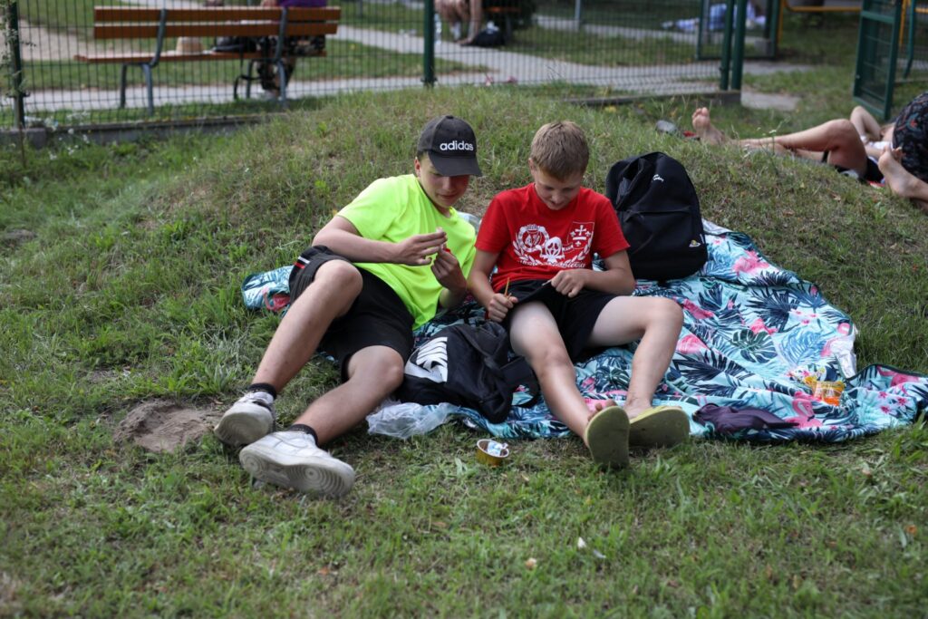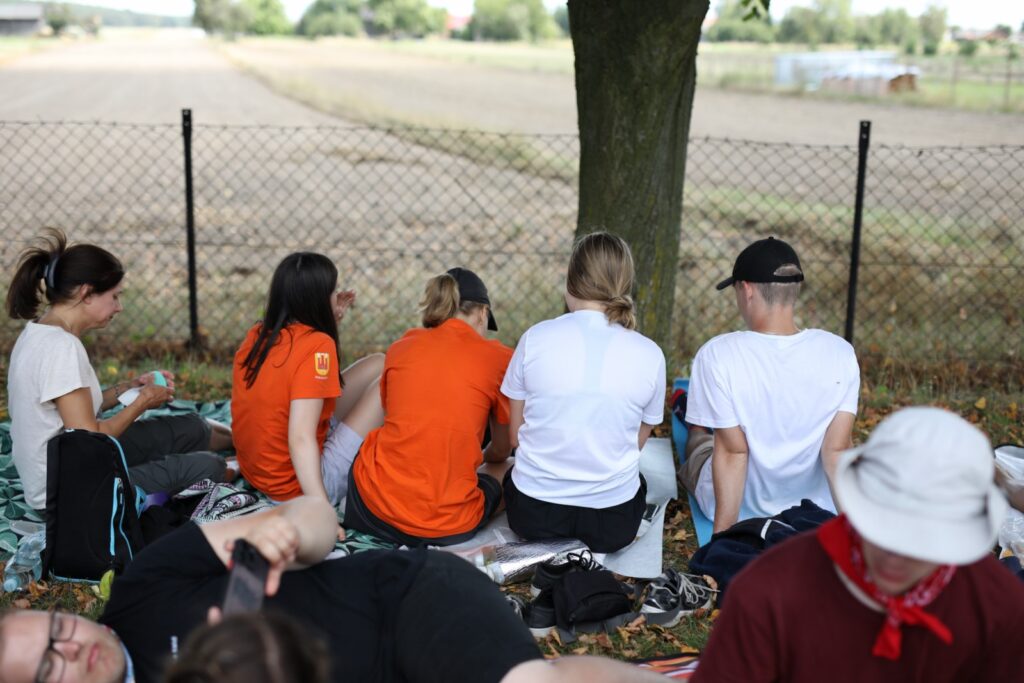 Murawa za szkołą, pierwszy raz (od lat!) nie była zajęta przez mecz, a przez leżących pielgrzymów, którzy nasłuchiwali relacji.